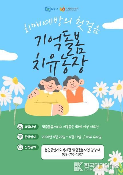 [ 한국미디어뉴스 김만길 기자 ] 인천시 남동구보건소가 자연 속 농업 활동을 활용한 치매 예방 프로그램 ‘기억돌봄 치유농장’을 올해부터 정식 사업으로 확대 운영한다.