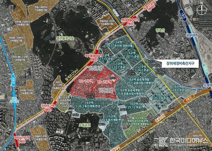 [ 한국미디어뉴스 이원영 기자 ] 서울시가 장위 재정비촉진지구의 마지막 남은 재개발 지역인 ‘장위동 219-90 일대(13-1구역), 장위동 224-12 일대(13-2구역)’의 신속통합기획을 확정(5,900세대 내외 규모, 13-1구역 : 3,400세대, 13-2구역 : 2,500세대)했다. 이로써, 장위 재정비촉진지구 전체의 재정비촉진계획 수립이 완료되어, 장위동 일대가 하나의 생활권으로 연결된 도시 구조로 재편돼 주민의 생활 여건이 한층 개선될 것으로 기대된다.
