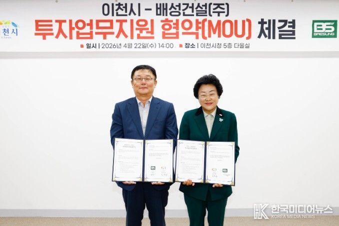 [ 한국미디어뉴스 이보영 기자 ] 이천시가 22일 배성건설㈜와 203억 원 규모의 투자업무지원협약을 체결하고, 기업의 신규 공장 신설을 본격 지원한다.