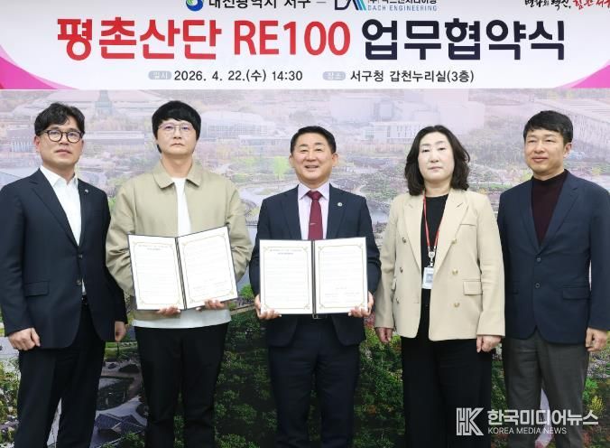 [ 한국미디어뉴스 이원영 기자 ] 대전 서구는 22일 구청 갑천누리실에서 평촌일반산업단지 입주기업인 ㈜닥스엔지니어링과 재생에너지 보급 확산을 위한 ‘RE100 업무협약’을 체결했다.