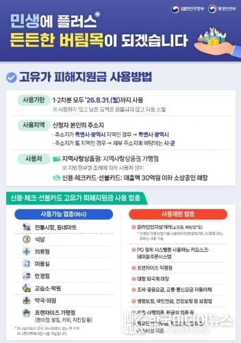 송무경 공주시장 권한대행은 “이번 고유가 피해지원금이 물가 상승으로 어려움을 겪는 시민들에게 실질적인 도움이 되길 기대한다”며 “대상 시민들이 빠짐없이 신청할 수 있도록 적극적인 홍보와 지원에 최선을 다하겠다”고 말했다.