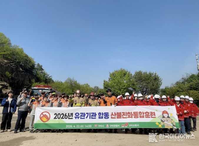 [ 한국미디어뉴스 김서안 기자 ] 구리시는 산불 발생 시 신속하고 체계적인 대응능력 강화를 위해 지난 4월 22일 고구려대장간마을 주차장에서 ‘2026년 유관기관 합동 산불 진화 통합훈련’을 실시했다고 밝혔다.