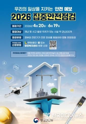 [ 한국미디어뉴스 김홍철 기자 ] 고성군은 지역 내 각종 안전사고 예방을 위해 지난 4월 20일부터 오는 6월 19일까지 ‘2026년 집중안전점검’을 실시하고 있다.