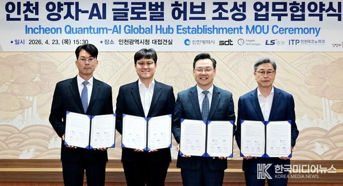 [ 한국미디어뉴스 이원영 기자 ] 인천광역시는 ㈜에스디티(이하 ‘SDT’), 미국 Anyon Computing(이하 ‘Anyon’), LS증권, 인천테크노파크와 함께 ‘양자-AI 글로벌 허브 조성’을 위한 업무협약(MOU)을 체결했다고 밝혔다.