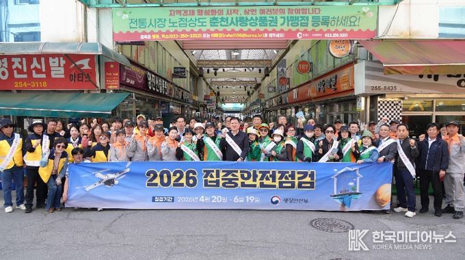 [ 한국미디어뉴스 이원영 기자 ] 춘천시와 춘천소방서, 한국전기안전공사, 강원도시가스 등 관계기관이 23일 중앙시장 일원에서 ‘2026년 집중안전점검 및 안전점검의 날’ 합동 캠페인을 실시했다.