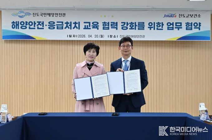 [ 한국미디어뉴스 이종철 기자 ] 진도군보건소와 진도국민해양안전관은 지역의 응급의료 대응 역량을 강화하고 군민의 생명 보호 체계를 한층 높이기 위해 ‘해양안전 및 응급처치 교육’ 협력 강화를 위한 업무협약(MOU)을 체결했다.