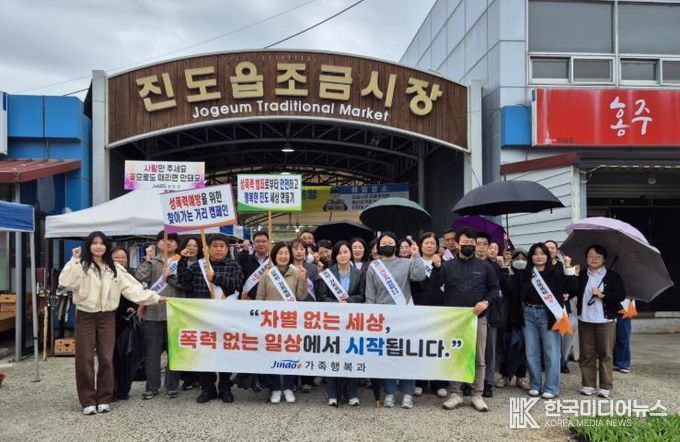 [ 한국미디어뉴스 이종철 기자 ] 진도군은 지난 22일 진도읍 오일장이 열리는 조금시장에서 일상에서의 차별과 편견을 줄이기 위해 ‘차별 없는 세상, 폭력 없는 일상에서 시작됩니다’를 표어로 폭력 예방 운동(캠페인)을 진행했다.