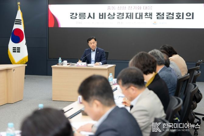 [ 한국미디어뉴스 이원영 기자 ] 강릉시는 24일 시청 8층 상황실에서 중동상황 장기화에 따른 유가 상승 및 원자재 수급 차질 등 지역경제 전반에 미치는 영향을 점검하고 선제적 대응 방안을 마련하기 위해 비상경제대책 점검회의를 개최했다.