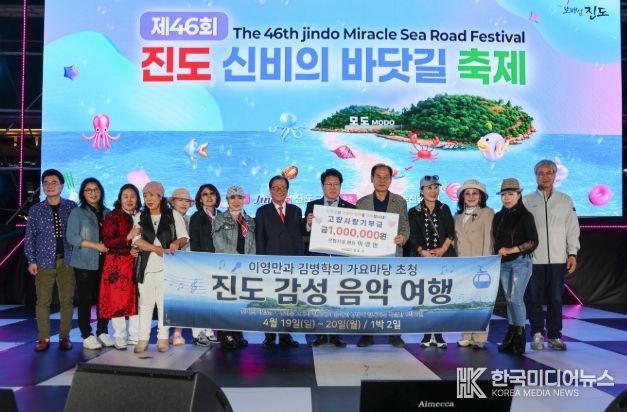 [ 한국미디어뉴스 이종철 기자 ] 지난 19일 진도군 철마광장에서 열린 진도 신비의 바닷길 축제 ‘미라클 콘서트’ 행사에서 서울 은평치과의 대표원장인 이영만 박사가 고향사랑기부금 100만 원을 기부했다.