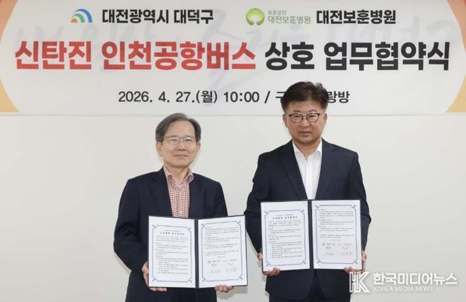 [ 한국미디어뉴스 이원영 기자 ] 대전 대덕구는 27일 신탄진-인천공항 간 공항버스 이용 활성화를 위해 대전보훈병원과 업무협약MOU)을 체결했다.