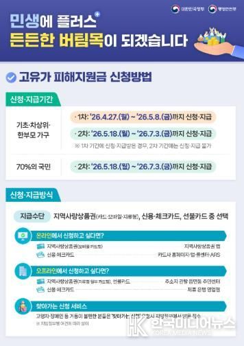 아울러 시는 ‘국민비서(구삐)’ 알림 서비스를 통해 지급 시작 이틀 전 개별 안내 메시지를 발송하는 등 시민들이 신청 시기를 놓치지 않도록 지원할 예정이다.