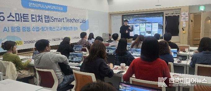 [ 한국미디어뉴스 이원영 기자 ] 인천남부교육지원청은 지난 25일 토요일, 관내 중학교 교사 60여 명을 대상으로 ‘2026 스마트 티처 랩(Smart Teacher Lab)’ 1회차 연수를 실시했다.