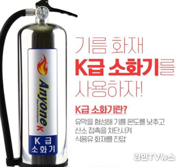 [ 경인TV뉴스 주재영 기자 ] 인천 계양소방서(서장 강한석)는 일반음식점 주방 유류 화재로 인한 인명ㆍ재산피해에 대비해 식용유 화재에 적응성이 우수한 K급 소화기를 의무적으로 비치하길 당부한다고 11일 밝혔다.