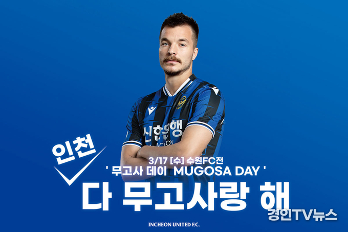 인천 구단은 오는 17일 수원FC와의 시즌 첫 주중 홈경기를 코로나19 양성 판정을 받고 관내 병원에서 격리 치료 중인 팀의 주포 무고사 선수를 응원하는 무고사 데이(Mugosa Day - ‘인천, 다 무고사랑 해’)로 진행한다고 16일 밝혔다.