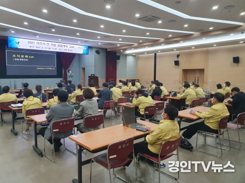 이번 교육은 코로나19 상황에 맞춰 간부 공무원들은 시청 대강당에서 대면 교육으로, 나머지 직원들은 사무실에서 '라이브 채널'로 송출되는 영상을 실시간 시청하며 교육에 참석하였다.