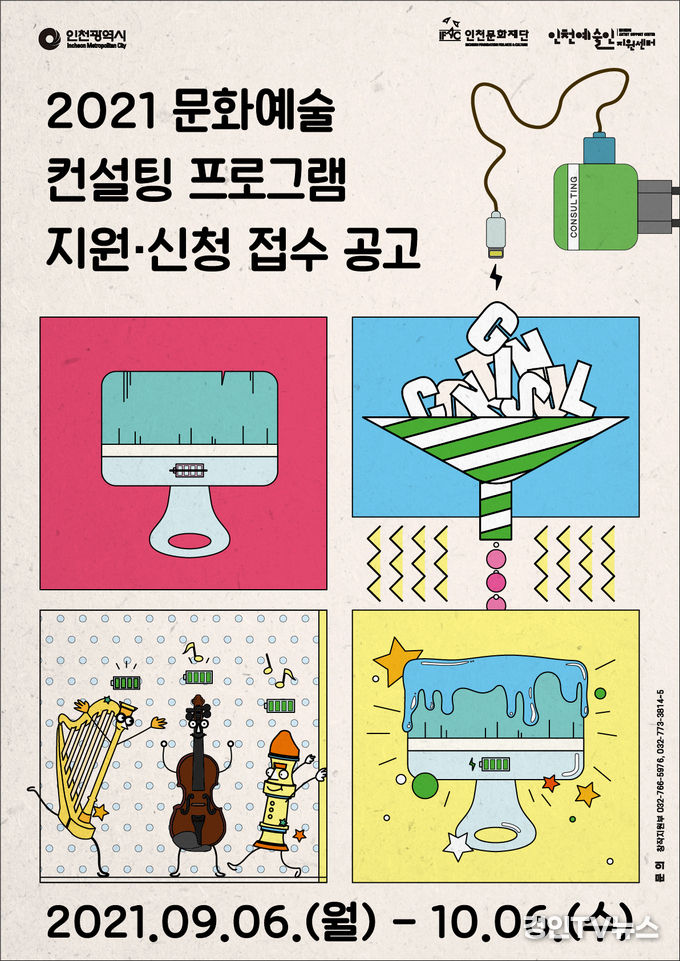 [ 경인TV뉴스 김선근 기자 ] (재)인천문화재단에서 '2021 문화예술 컨설팅 지원사업'에 참여할 지원자를 모집한다. 해당사업은 인천 내 예술인 및 단체의 역량과 자생력 확보, 지역의 건강한 예술 선순환 체계 마련을 위해 실행되는 사업으로 9월 6일부터 10월 6일 18시까지 선착순으로 지원자를 모집한다.