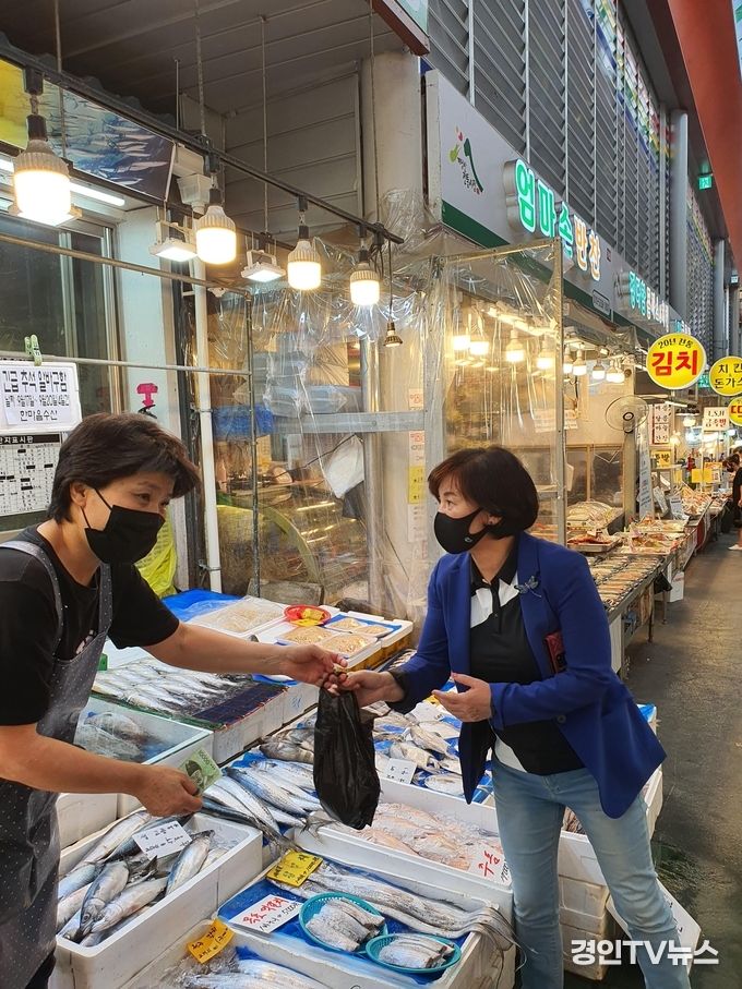 [ 경인TV뉴스 김선근 기자 ] 인천시 계양구의회 김유순 의장은 지난 16일 추석명절을 앞두고 지역 계양산전통시장을 방문하여 상인들을 격려했다.