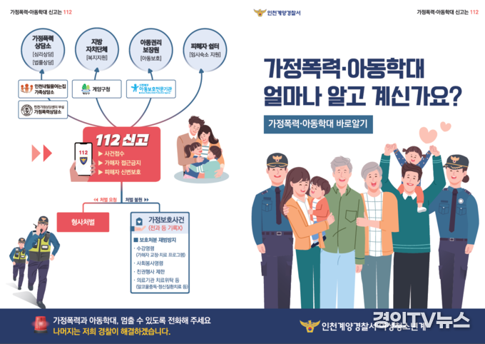 [ 경인TV뉴스 김선근 기자 ] 인천계양경찰서(서장 조은수)는 지난 14일 이마트 계양점 앞에서 가족상담소내일을여는집과 합동으로‘가정폭력‧아동학대 바로알기’ 캠페인을 개최하였다.