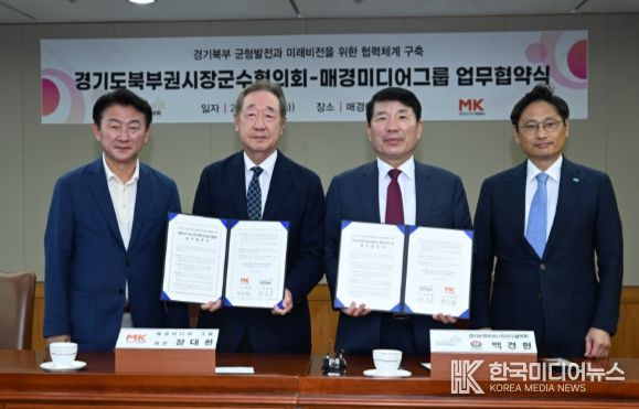 [ 한국미디어뉴스 윤영태 기자 ] 경기도북부권시장군수협의회와 매경미디어그룹은 5일 서울 중구 매경미디어센터에서 ‘경기북부 균형발전과 미래비전을 위한 업무협약’을 체결했다.