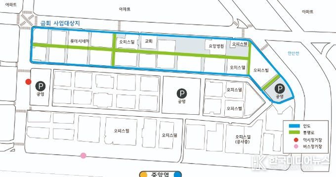 안산시 사업대상지인 중앙동 중심상가(고잔동 539번지 일원)는 불법구조물과 좁은 골목, 파손·함몰된 도로 등으로 보행 안전이 취약해 가로환경 개선이 시급한 곳이었다.