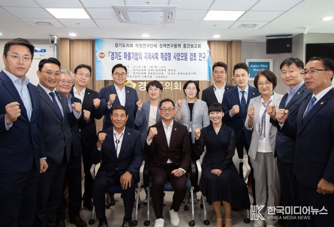 [ 한국미디어뉴스 윤영태 기자 ] 경기도의회 경제노동연구회는 5일(화), 경기도의회 경제노동위원회 회의장에서 '경기도 마을기업의 지역사회문제 해결형 사업모델연구'(수탁기관: 서경대학교 정책디자인센터)에 대한 정책연구용역 중간보고회를 개최했다.