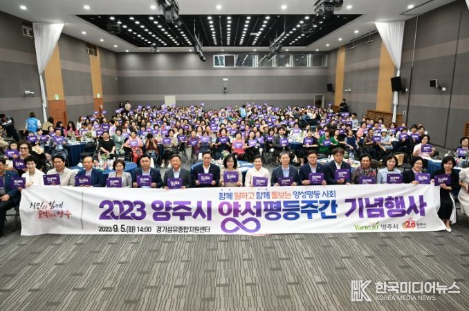 [ 한국미디어뉴스 윤영태 기자 ] 양주시는 지난 5일 경기섬유종합지원센터에서 양성평등주간(9.1.~9.7)을 맞아 ‘함께 일하고, 함께 돌보는 양성평등 사회’라는 주제로‘2023년 양주시 양성평등주간 기념행사’를 개최했다.