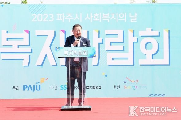 [ 한국미디어뉴스 윤영태 기자 ] 파주시가 주최하고 파주시사회복지협의회가 주관하는 ‘2023년 파주시 사회복지의 날’ 기념행사가 6일 도로관리사업소 앞 수변공원에서 열렸다.