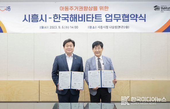 [ 한국미디어뉴스 윤영태 기자 ] 시흥시가 6일 시청 다슬방에서 한국해비타트와 ‘아동 주거권 향상을 위한 업무협약’을 체결했다.