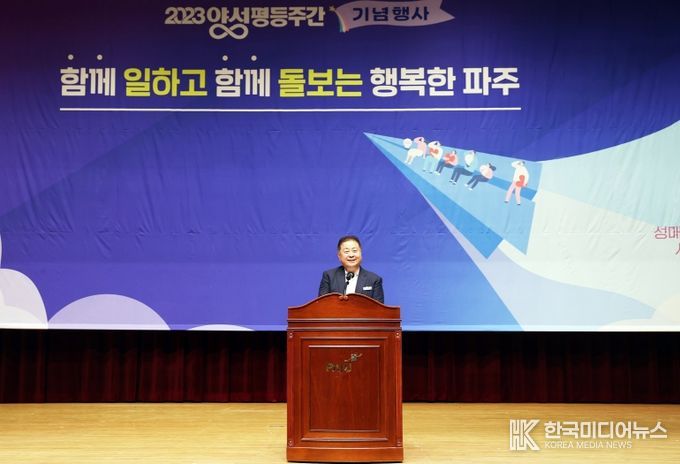 [ 한국미디어뉴스 윤영태 기자 ] 파주시는 6일 시민회관 대공연장에서 김경일 파주시장, 이성철 파주시의장, 지역사회단체, 시민 등 350여 명이 참석한 가운데 2023년 양성평등주간 기념행사를 개최했다.