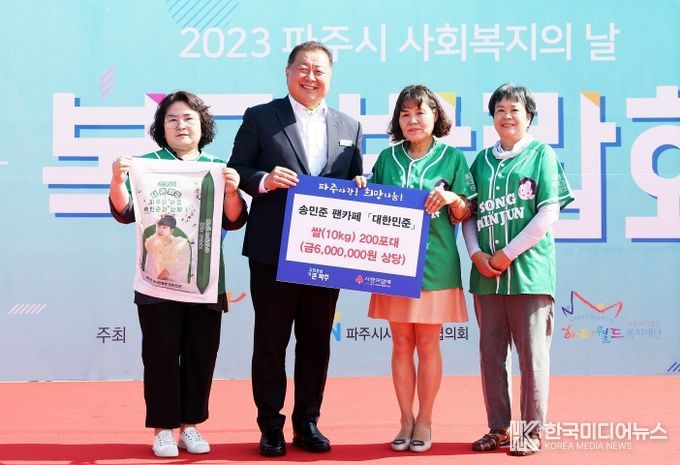 [ 한국미디어뉴스 윤영태 기자 ] 파주시는 6일 파주시 홍보대사 가수 송민준 팬카페 ‘대한민준’으로부터 관내 저소득 노인을 위한 쌀(10kg) 200포를 전달받았다고 밝혔다.