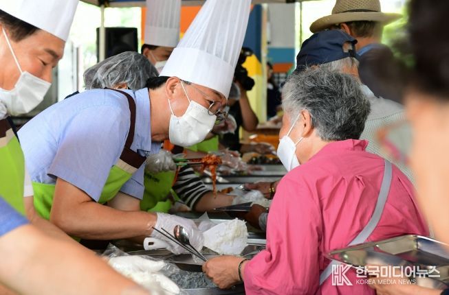 앞서 지난 6일 상록수역광장에서 하반기 첫 운영된 나눔 행사에는 이민근 안산시장을 비롯해 9개 봉사단체 자원봉사자 등 80여 명이 참석한 가운데 어르신 500여 명에게 정성 가득한 식사를 대접했다.