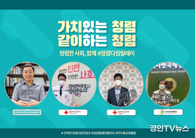 이번 챌린지는 대한적십자사 인천혈액원 박종술 혈액원장을 시작으로 지난 7월 청렴협약을 체결한 대한적십자사 인천지사와 나사렛국제병원, 인일회계 법인이 함께 동참해 사내 청렴문화 정착에 앞장설 예정이다.