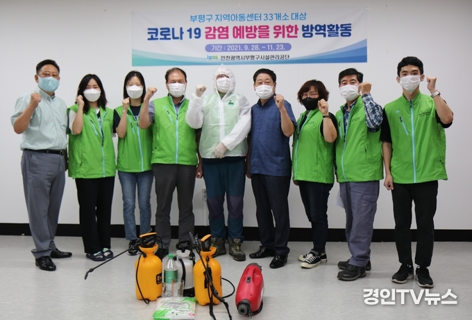 [ 경인TV뉴스 김선근 기자 ] 인천 부평구시설관리공단(이사장 장세강, 이하 ‘공단’)이 9월 28일부터 11월23일까지 관내 취약계층 아동 육성을 지원하는 지역아동센터에 방문하여 방역 사회공헌 활동을 실시한다.