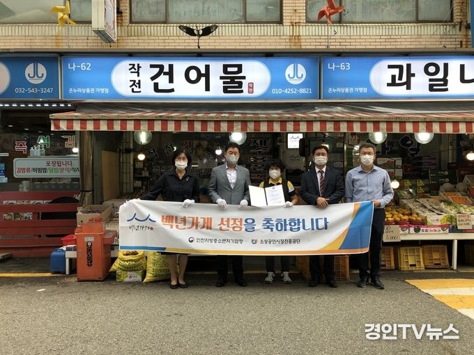 [ 경인TV뉴스 김선근 기자 ] 인천지방중소벤처기업청(청장 유동준)은 인천지역 소상공인 성공모델 확산을 위해 10월 7일(목)에 인천 계양구에 위치한 ‘작전건어물’, ‘시장정육점’을 방문하여 백년가게 현판식을 개최했다고 밝혔다.