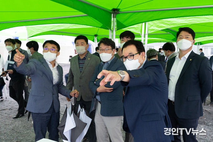 이날 건설교통위원들은 한화건설과 포스코건설 관계자들을 만나 지역건설업체의 어려운 상황 속에서 지역건설업체 상생방안에 대해 시공사와 논의를 진행했다. 또 공사 중 발생될 환경문제 방지와 안전하고 철저한 공사 진행을 주문했다.