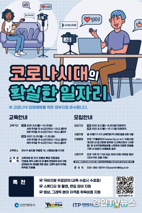 한편, 인천시의 ‘시-군·구 상생 협력 특화 일자리 창출 사업’ 공모에 선정된 인천TP-연수구 컨소시엄은 이 교육과정을 통해 4년에 걸쳐 크리에이터 240명 양성에 나선다.