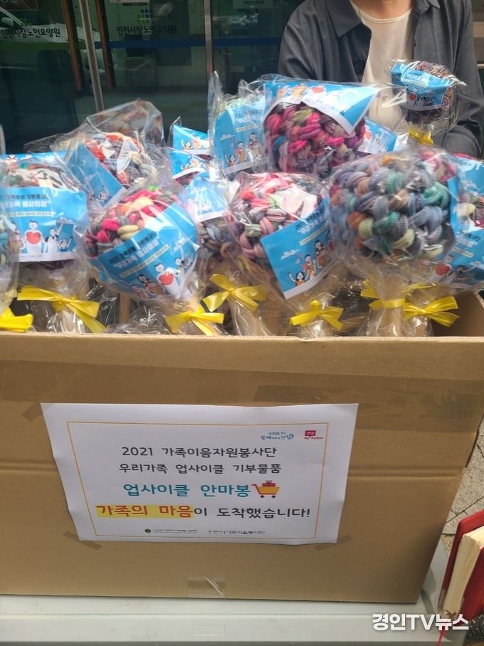 전달된 안마봉은 8월~ 9월간 인천가족이음자원봉사단의 71가족(194명)이 참여하여 가정내에서 비대면으로 양말목을 업사이클하여 제작한 것으로 총 200여개가 제작되었으며, 이중 100여개는 미추홀구자원봉사센터, 연수구자원봉사센터, 계양구자원봉사센터, 서구자원봉사센터를 통해 코로나19 선별진료소 및 생활치료센터와 취약계층 노인에 전달되었다.