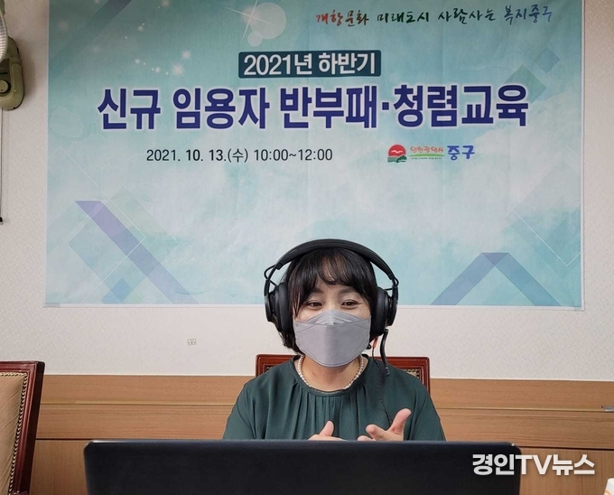 [ 경인TV뉴스 관리자 기자 ] { 포토 뉴스 }홍인성 인천시 중구청장은 모든 공직자를 대상으로 국민권익위원회 청렴연수원 등록 강사인 박연정, 민수진 강사를 초빙해 2021년도 반부패·청렴 교육을 온라인으로 실시했다,