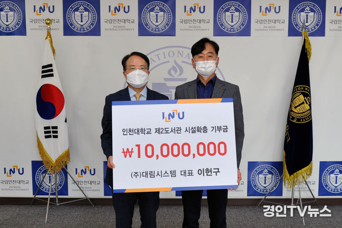[ 경인TV뉴스 김선근 기자 ] (주)대림시스템 이헌구 대표가 10월 27일(수)에 (재)인천대학교발전기금(이사장 박종태)에 제2도서관 시설확충기금 1천만원을 기탁하였다.