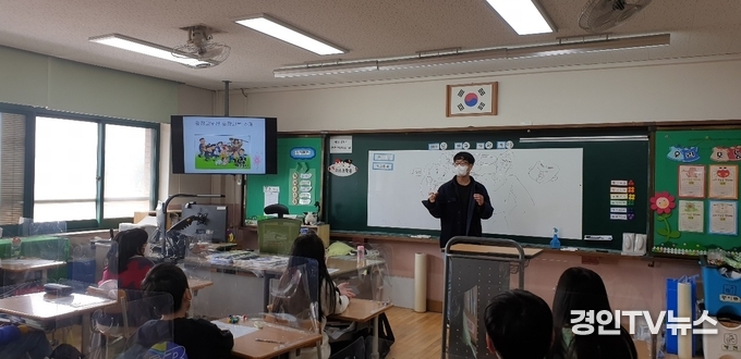 [ 경인TV뉴스 김선근 기자 ] 인천담방초등학교(교장 김정민)는 10월 28일(목) ‘검정고무신’ 이우영 만화작가를 초청하여 6학년을 대상으로 진로교육 특강을 열었다.