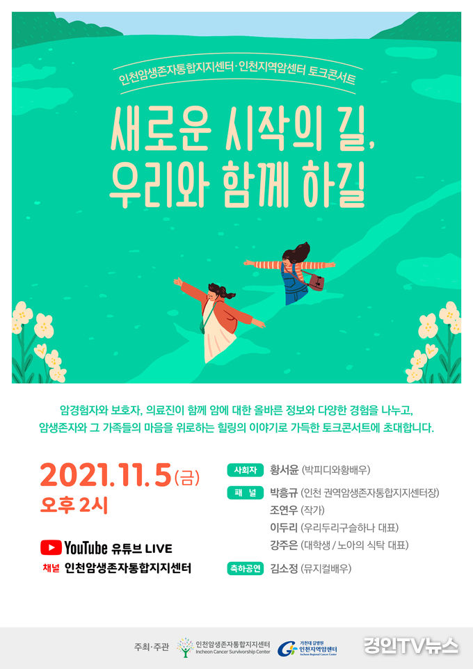 콘서트는 5일 오후 2시부터 약 80분간 진행되며, 콘서트 참여를 희망하는 사람 누구나 유튜브 채널 ‘인천암생존자통합지지센터’로 입장하면 된다.