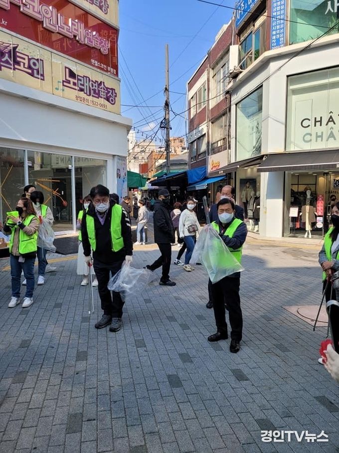 이날 신 의장 과 봉사 단체는 쓰레게 줍기에서 주민들로 부터 많은 박수를 받았다.