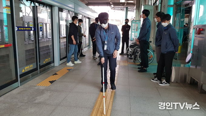 [ 경인TV뉴스 김선근 기자 ] 인천교통공사(사장 정희윤)는 지난 2일 공사 승무사업소 관리자 및 기관사를 대상으로 교통약자체험 행사를 실시했다고 밝혔다.
