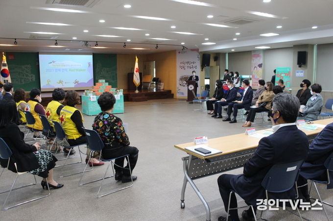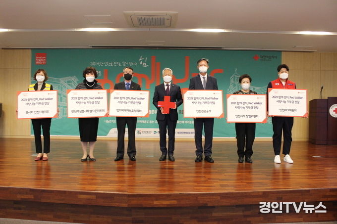 [ 경인TV뉴스 김선근 기자 ] 대한적십자사 인천지사(회장 김창남)는 11월 3일(수) 대한적십자사 인천지사 4층 강당에서 공동주관사와 후원사가 참여한 가운데『2021 함께 걷자, Red Walker』의 론칭식을 개최하였다고 밝혔다.