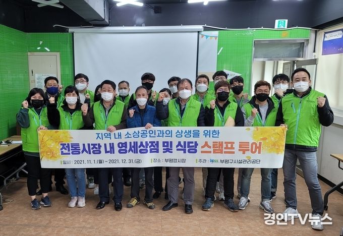 [ 경인TV뉴스 관리자 기자 ] 인천 부평구시설관리공단(장세강 이사장, 이하 ‘공단’)이 11월부터 12월까지 부평깡시장에서 공단 임직원 대상으로 진행하는 ‘전통시장 스탬프 투어(도장 찍기 여행)’를 실시한다고 4일 밝혔다.