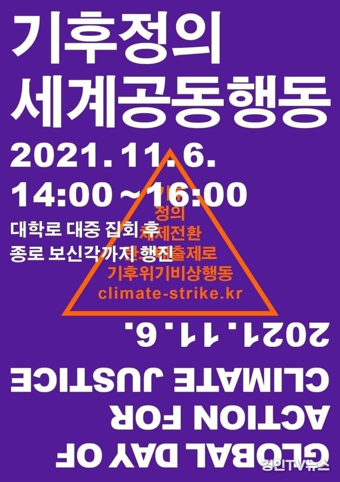 11월 6일(토)은 전 세계 기후 행동가들이 기후정의를 위한 세계 행동의 날(GLOBAL DAY OF ACTION FOR CLIMATE JUSTICE NOV 6)로 정하고 기후정의 실현을 요구하는 행동을 합니다. ( https://cop26coalition.org/ )