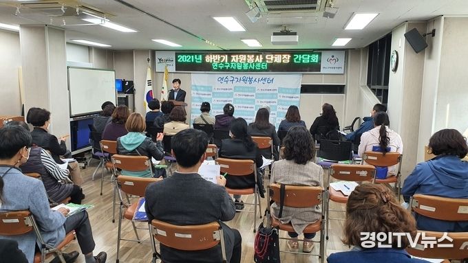 [ 경인TV뉴스 김선근 기자 ] 인천 연수구자원봉사센터는(센터장 조정준) 2021년 11월 2일(화), 3일(수) 15시에 연수구에서 자원봉사활동을 하고 있는 자원봉사단체장들을 대상으로 2021년 하반기 단체장 간담회를 실시하였다.