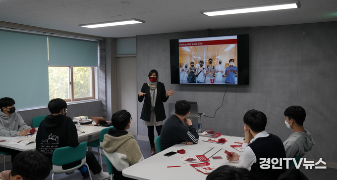 [ 경인TV뉴스 김선근 기자 ] 유타대학교 아시아캠퍼스(대표 그레고리 힐 캐시)는 5일(금) 100여 년의 역사와 함께 인천 지역 명문고등학교로 자리매김하고 있는 송도고등학교(교장 이상원)에서 1학년 학생들을 대상으로 전기컴퓨터공학 특별 강연을 진행했다.