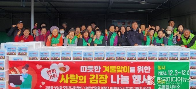 [ 한국미디어뉴스 기자 ] 고흥군 고흥읍은 지난 3일부터 5일까지 3일간 읍사무소 광장에서 주민자치위원회, 새마을부녀회, 공무원 등 관계자 60여 명이 참여한 가운데 ‘2024년 사랑의 김장김치 나눔행사’를 진행했다.