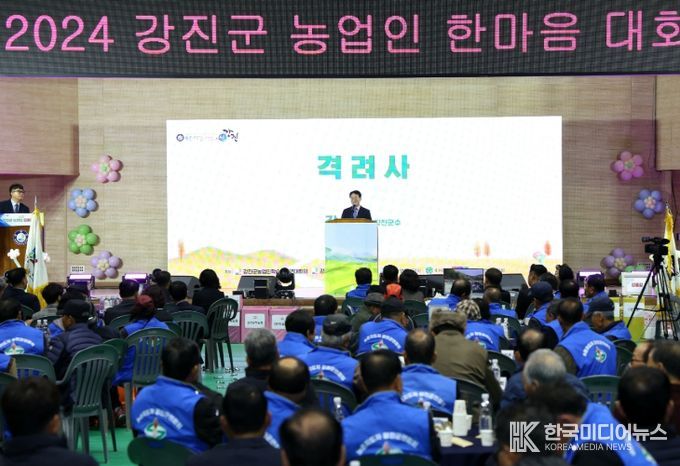 [ 한국미디어뉴스 기자 ] 6개 농업인 학습단체가 공동으로 주관한 2024년 강진군 농업인 한마음대회가 ‘희망찬 농업 창조의 신강진! 우리의 힘으로!’를 주제로 지난 6일 강진 제1실내체육관에서 성대하게 개최됐다.